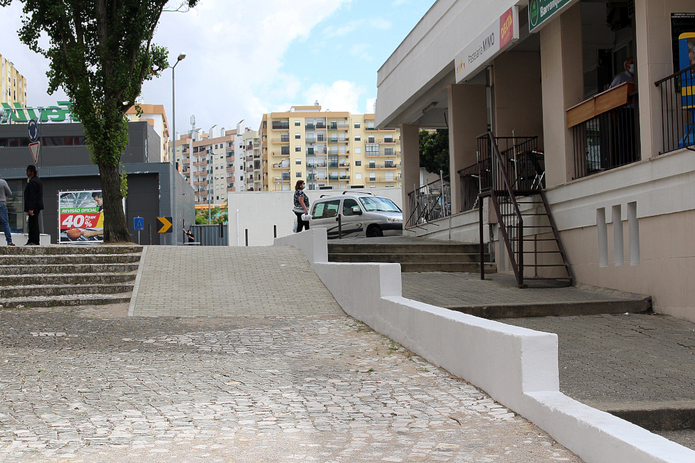 A criação de uma rampa, na área que liga a Avenida Nuno Álvares à Rua Tratado de Tordesilhas, constitui uma das obras executadas pelos serviços operacionais da junta de freguesia, que beneficiaram a acessibilidade pedonal.