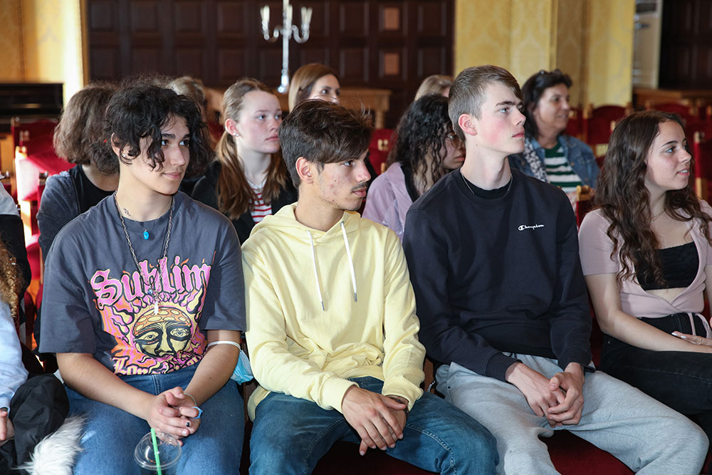 Vinte e quatro alunos do ensino secundário de quatro países, que se encontram em Setúbal entre os dias 2 e 6 no âmbito do Projeto Cultural Ecology, foram recebidos no dia 3 de maio pela vice-presidente da Câmara Municipal de Setúbal, Carla Guerreiro.