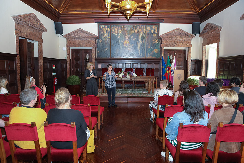 A autarca, que tutela os pelouros da Educação e do Ambiente, fez, em sessão de acolhimento realizada no Salão Nobre dos Paços do Concelho, uma breve apresentação da cidade e das suas riquezas naturais, destacando que o município integra a Rede das Cidades Educadoras e atribui grande importância a este tipo de intercâmbios.