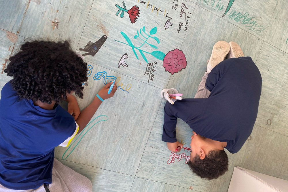 Na iniciativa “Mosaicos por Abril”, as crianças contaram com a colaboração de artistas da Artiset – Associação dos Artistas Plásticos de Setúbal para pintar o significado da Liberdade, integrando nos trabalhos realizados elementos icónicos do 25 de Abril, como os cravos.