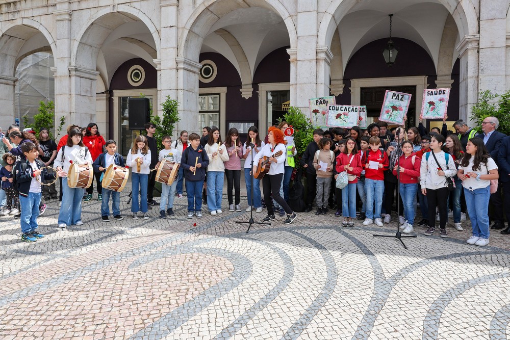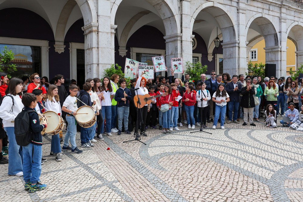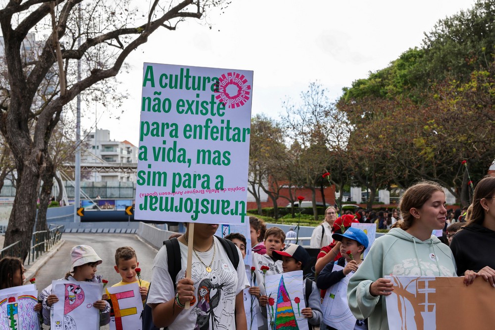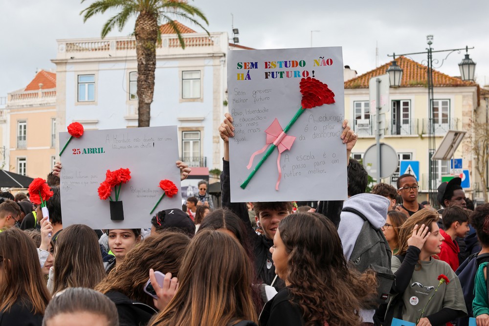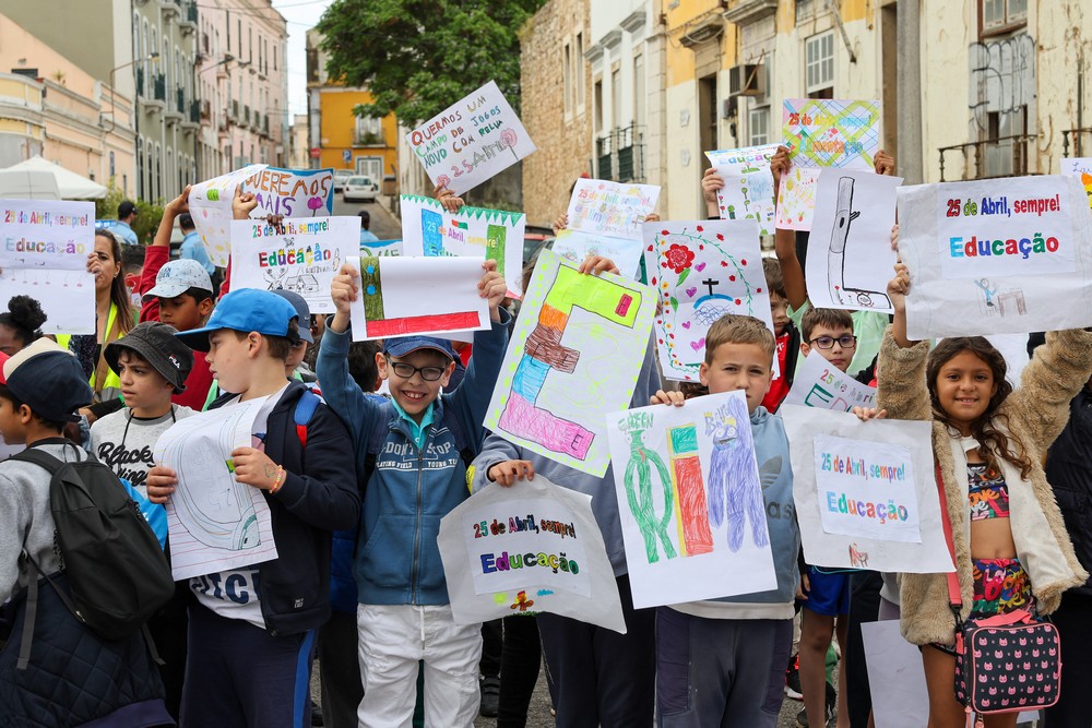 Crianças e jovens de todos os níveis de ensino empunhavam cartazes com várias frases alusivas ao 25 de Abril e outras com reivindicações, tais como “Queremos Escolas sem desigualdades”, “Paz, pão, habitação, saúde, educação”, “Sem estudo não há futuro” e “A cultura não existe para enfeitar a vida, mas sim para a transformar”.