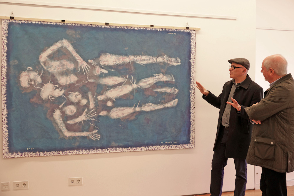 A mostra apresenta seis obras de António Galrinho, feitas em tinta acrílica e materializadas em pano-cru.