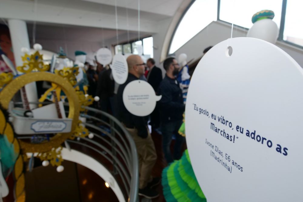 Ao longo da exposição há ainda recursos audiovisuais e testemunhos escritos nas paredes, como frases, relatos de memórias e emoções vividas por quem se dedica à arte das Marchas Populares.