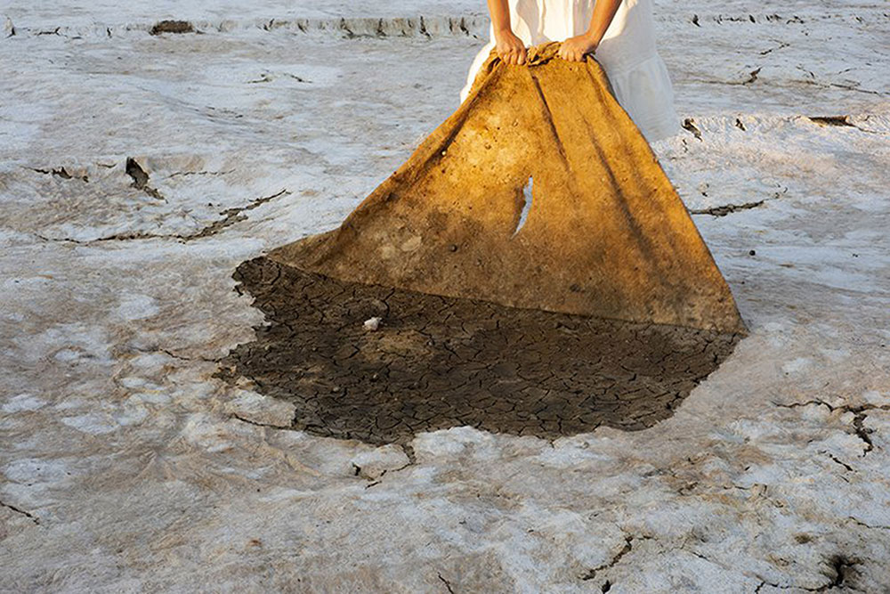Os responsáveis da exposição adiantam que, com o trabalho “A Arte de Sombrear o Sol”, Evgenia Emets “acompanha as alterações climáticas, a transição agroecológica e a agricultura sintrópica em Mértola como uma possibilidade de adaptação a uma realidade de severa escassez de água”.