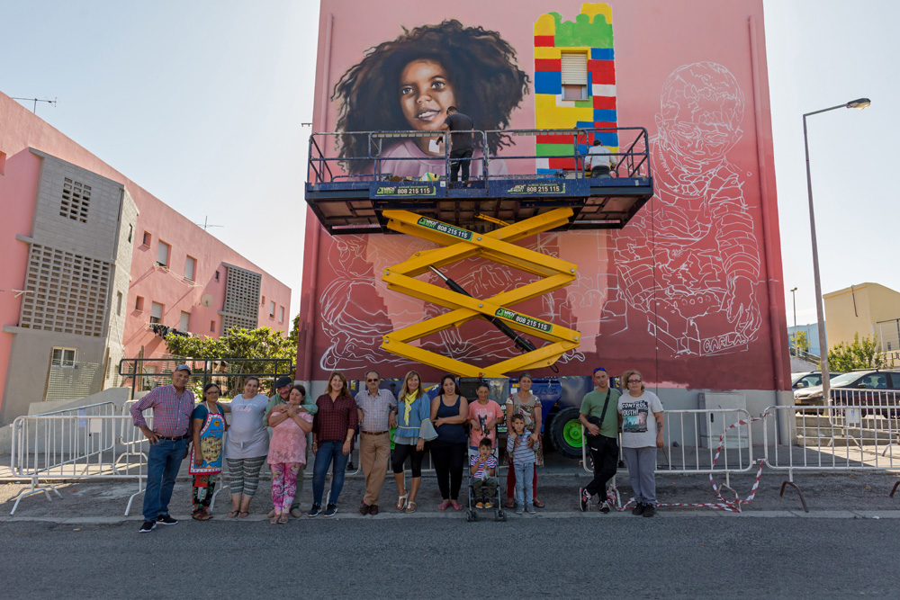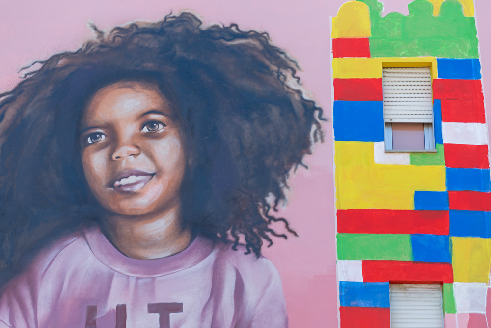 A imagem das duas crianças na empena do edifício de A Nossa Casinha, polo de desenvolvimento de atividades sociais, lúdicas e educativas, destinadas essencialmente a crianças e jovens e a idosos, com o objetivo de a combater o isolamento da população sénior, deu uma nova conotação ao espaço, tornando-o mais acolhedor e dinâmico.