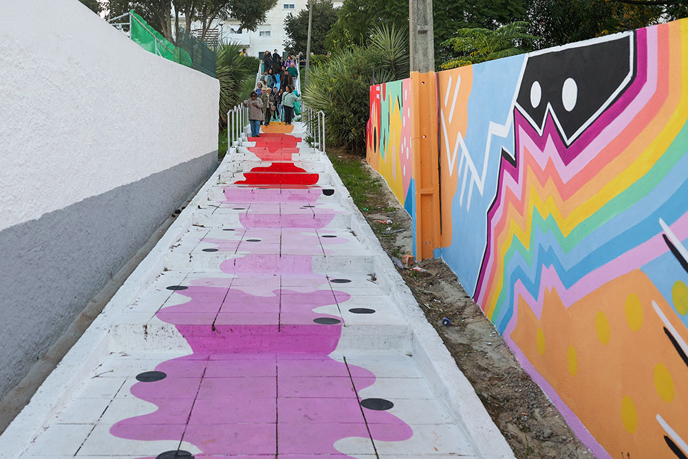 “Luz”, um mural de Ângela Miranda Penedo, que inclui intervenção em muro e escadaria, em cores simples para simbolizar a união e a tranquilidade num espaço de encontro, esperança e lembrança que liga os dois bairros, homenageia duas mulheres, uma moradora e uma técnica superior da autarquia, falecidas recentemente, que em muito contribuíram para o trabalho que tem vindo a ser desenvolvido naquele território.