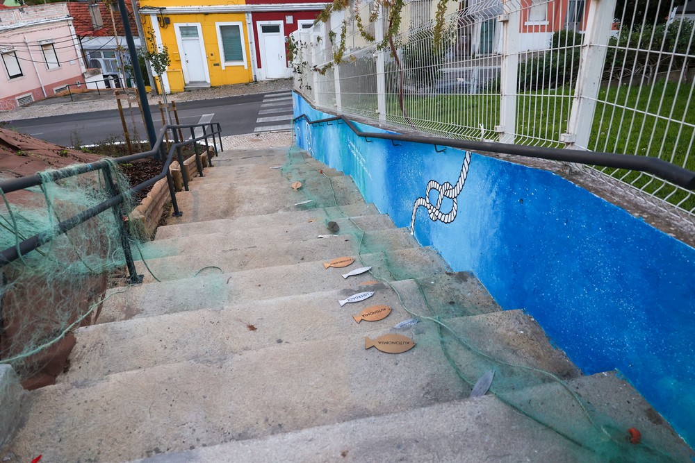 Já “O Caminho dos Pescadores”, da autoria do coletivo Explicit Citizens, em tons de azul e com vários elementos ligados ao setor da pesca, faz um tributo às gentes ligadas à atividade piscatória e à indústria conserveira, com inspiração a partir de um poema de um morador, Abílio Paciência, e que teve como base uma pintura colaborativa realizada a 27 de outubro pelo coletivo artístico, APPACDM de Setúbal e moradores.