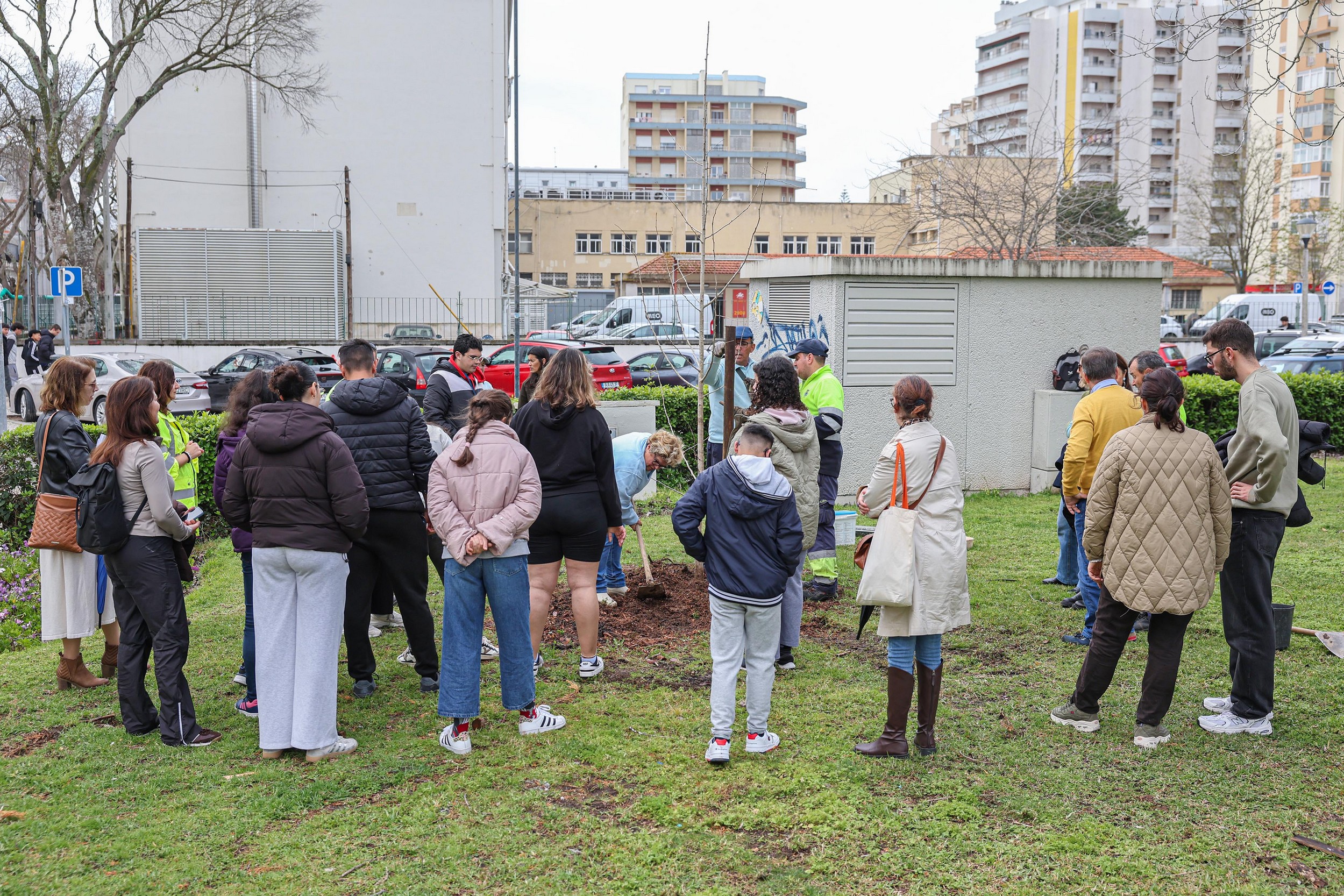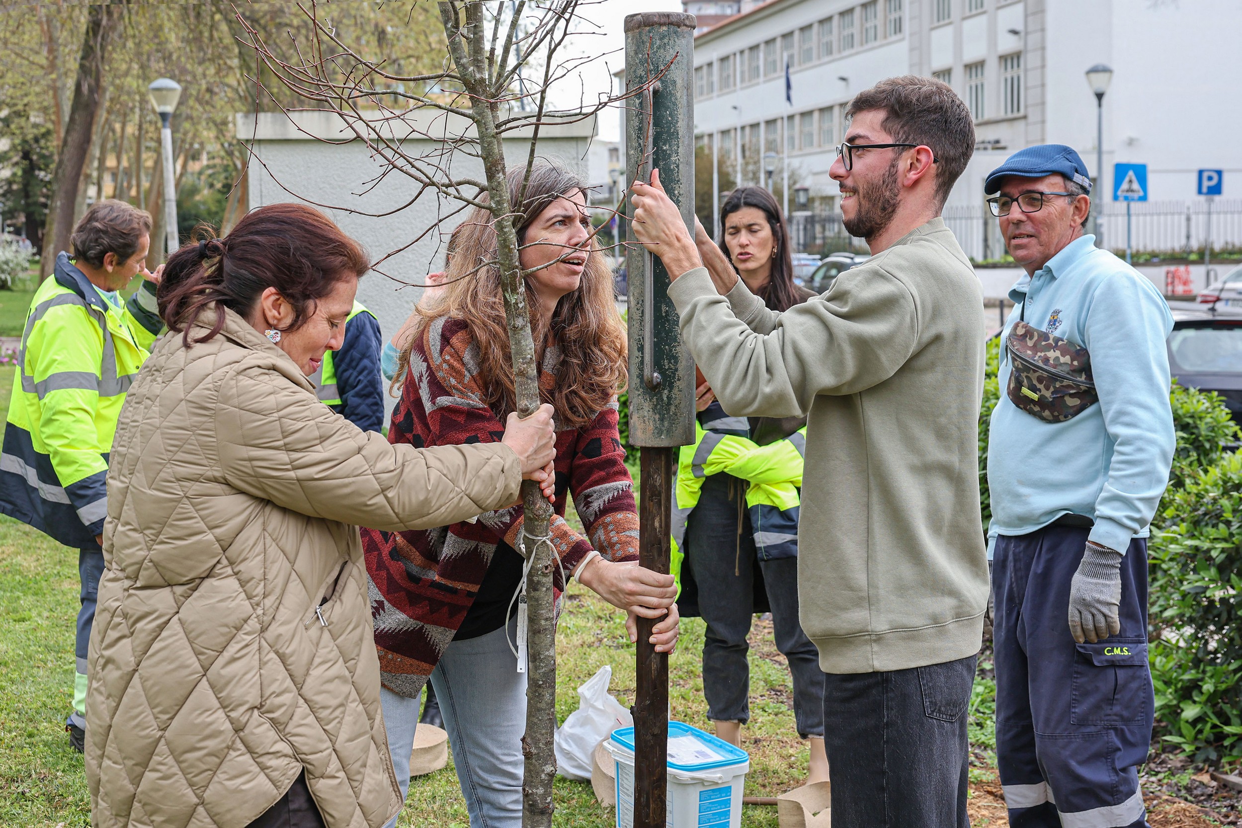 Uma turma de dez alunos do CAA – Ensino Especial do Agrupamento de Escolas Sebastião da Gama que passava no Parque do Bonfim a caminho de uma atividade curricular juntou-se também à iniciativa e ajudou a plantar a ginkgo biloba.