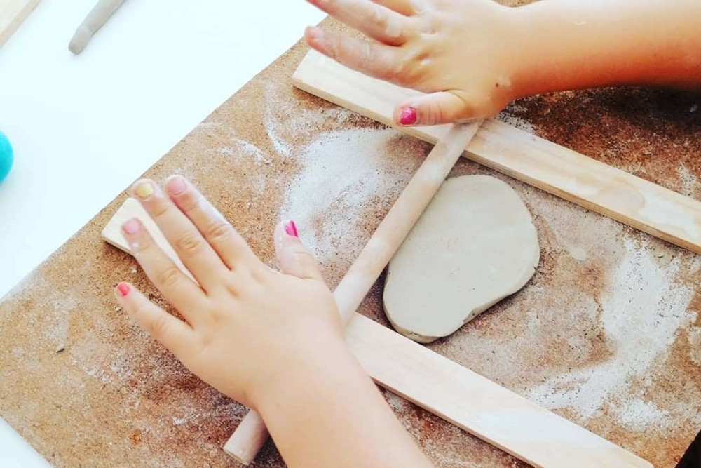 No decorrer desta atividade para famílias, conduzida pelo Atelier Olaré – Cerâmica e Tecelagem em parceria com a Câmara Municipal de Setúbal, os participantes fazem pratos de barro em forma de cara de coelho com recurso à técnica da lastra.