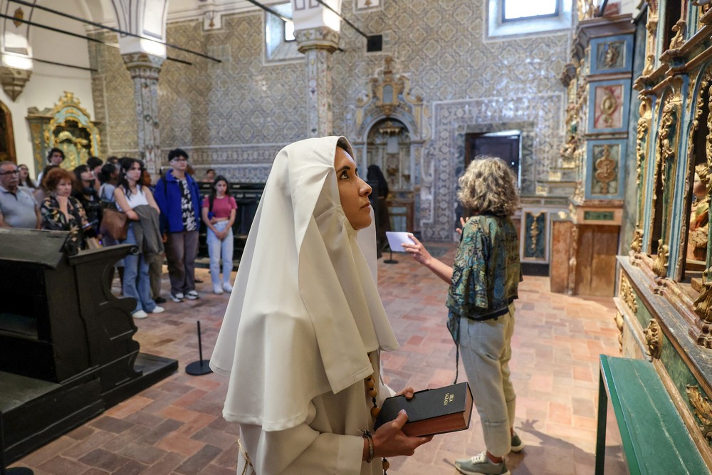 Ao longo do percurso, duas mulheres vestidas de freiras encenaram várias atividades, como cultivo de legumes e fruta e práticas religiosas, para demonstrar como seria a vida conventual ao longo dos séculos no monumento.