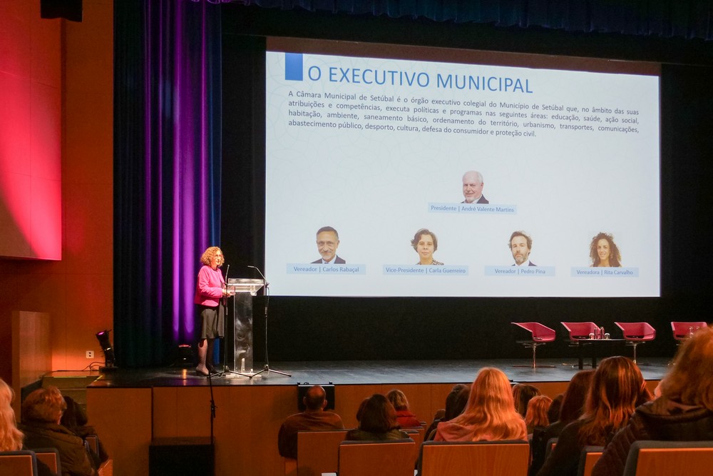 Após a intervenção do presidente, a chefe da Divisão de Desenvolvimento de Competências, Rosária Murça, deu a conhecer a organização e o funcionamento da Câmara Municipal de Setúbal e várias questões relacionadas com os direitos e os deveres dos trabalhadores