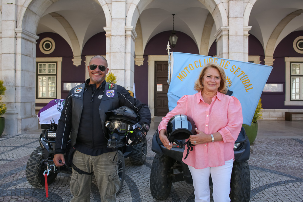 A aventura, designada “Portugal aos 4 Cantos”, iniciada na manhã de 25 de junho, com partida junto do Moto Clube de Setúbal, após uma receção defronte dos Paços do Concelho, incluiu um desfile pela Avenida Luísa Todi, no qual participou a presidente da Câmara Municipal, Maria das Dores Meira.