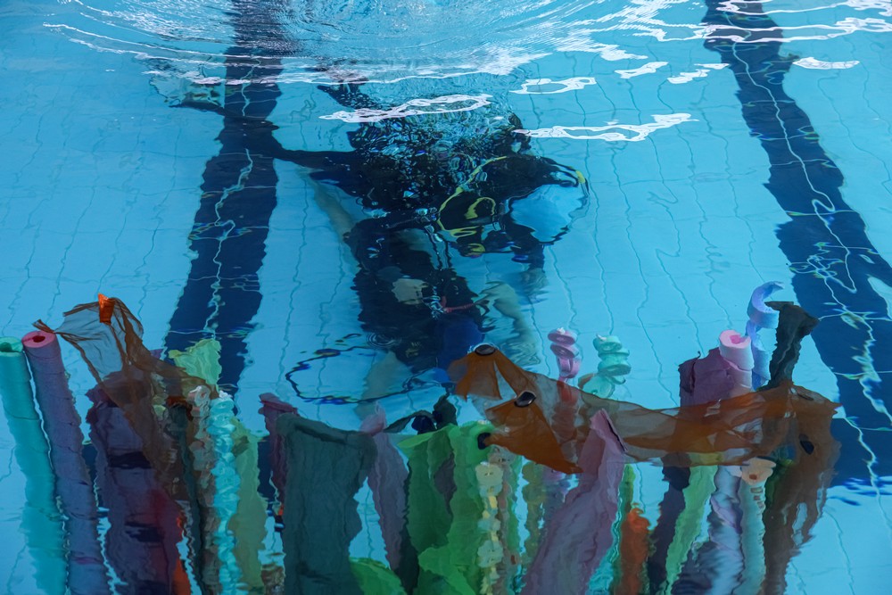 Na piscina, além de fazerem o batismo de mergulho, os alunos cumprem um percurso subaquático ao longo do qual participam numa série de jogos com o objetivo de promover a sustentabilidade e a proteção do oceano, bem como alertar para riscos ambientais.