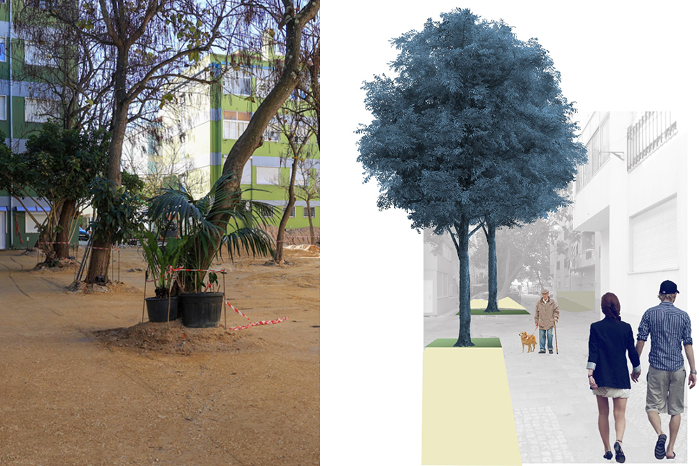 A requalificação dos pavimentos e das caldeiras das árvores existentes e a plantação de novas árvores de pequena dimensão e floração intensa, bem como de arbustos e herbáceas adaptadas ao clima local, são intervenções contempladas com o objetivo de proporcionar um espaço com condições de conforto e segurança para o lazer da população.