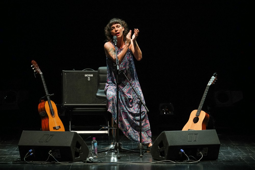 Bia Ferreira esteve sozinha em palco em formato voz e violão e proporcionou à plateia, com a presença do vereador da Cultura da Câmara Municipal de Setúbal, Pedro Pina, ritmos embalados pelo rap nas mais variadas vertentes.