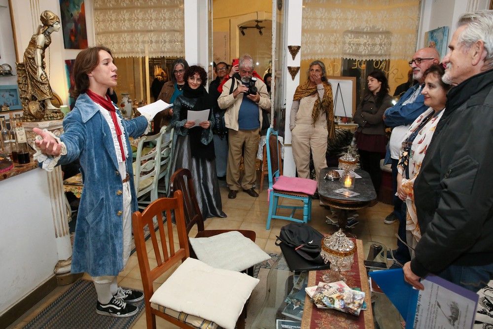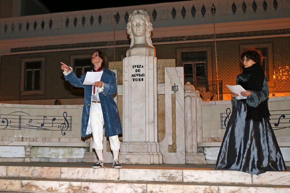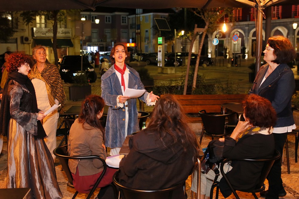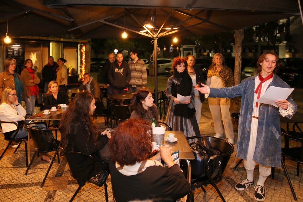 O circuito começou na Praça de Bocage e incluiu algumas paragens pelas ruas da Baixa com um grupo de atores do TOMA a declamar poesia do poeta sadino.
