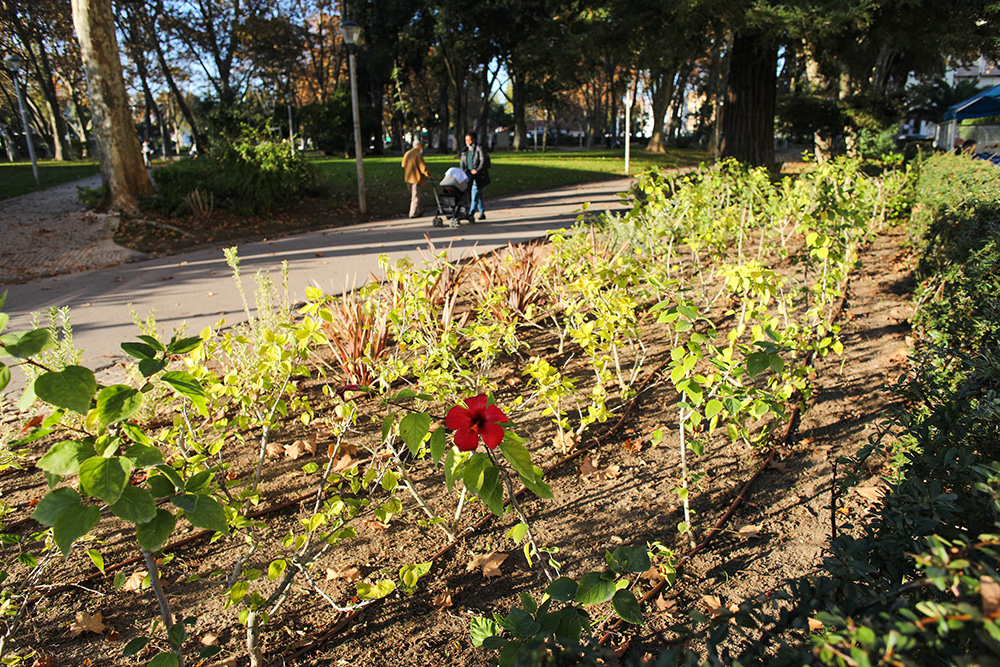 A retirada parcial da rega gota a gota desta lateral do parque permite uma poupança de água diária de cerca de 320 litros e a melhoria do sistema de irrigação em termos de pressão, mais adequado para a vegetação.