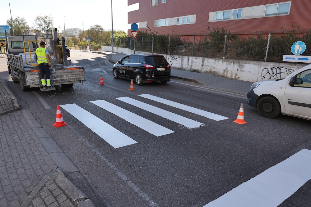 Estão ainda a ser repintadas várias passadeiras na zona do Montalvão, concretamente nas ruas Oliveira Martins, Frei António das Chagas e Isaías Newton, e no troço da EN10 entre as rotundas Praça do Tratado de Roma e Praça do Tratado de Lisboa.