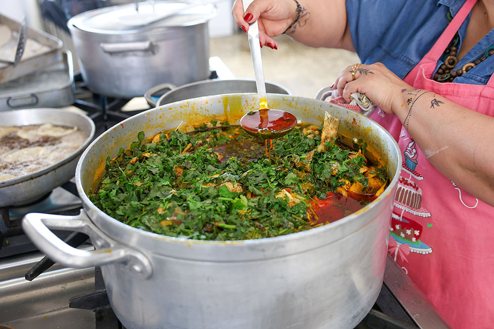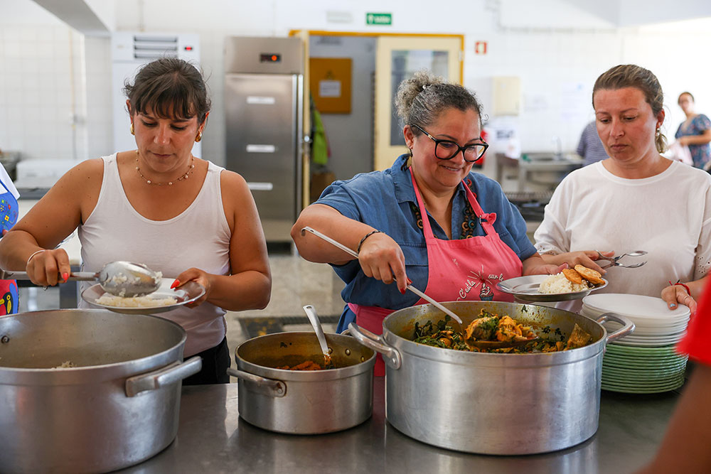 A ementa do almoço contou com pastéis de peixe, de Cabo Verde, moqueca de peixe, do Brasil, e napoleão, uma sobremesa russa, permitindo aos jovens das Atividades Instrumentais de Vida Diária (AIVD) de cozinha terem acesso a “outros ingredientes e sabores” além dos com que normalmente trabalham, segundo Sara Cravo, do CAARPD – Centro de Atendimento, Acompanhamento e Reabilitação Social para Pessoas com Deficiência e Incapacidade da APPACDM de Setúbal.
