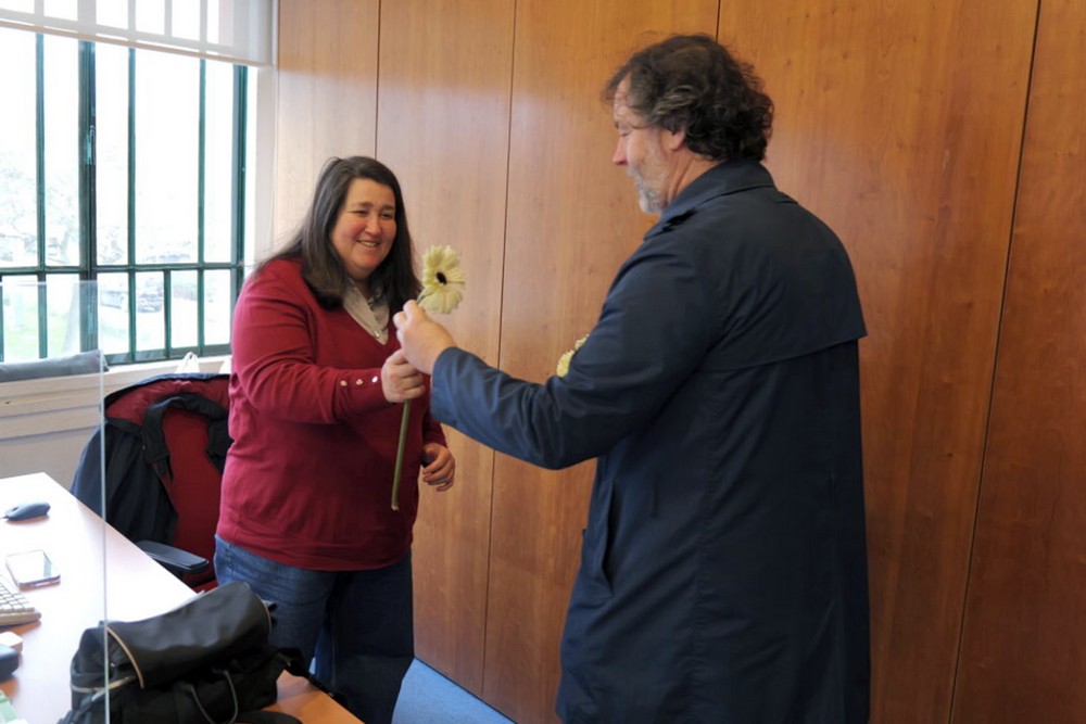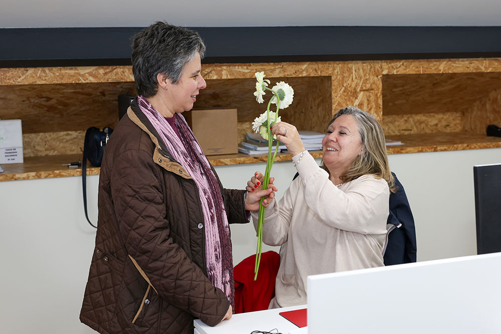 Carla Guerreiro e os restantes membros do Executivo municipal estiveram durante o dia a distribuir flores às funcionárias da autarquia nos serviços e noutros edifícios e locais onde trabalham.