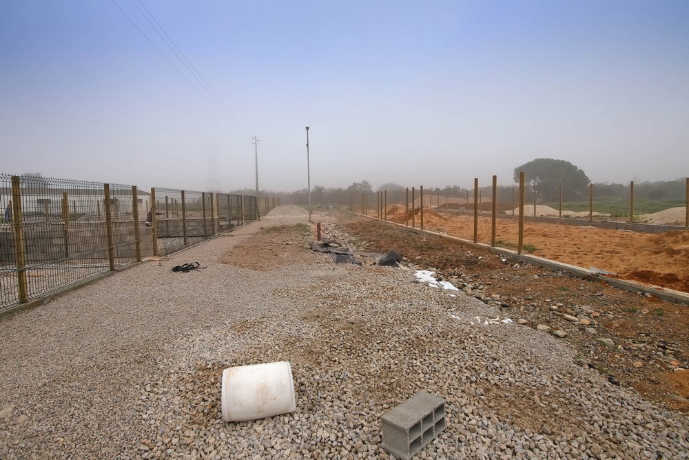 Numa segunda fase, foi construído um muro em redor da nova estrutura com rede envolta para evitar fugas e colocado um piso de tela com gravilha.