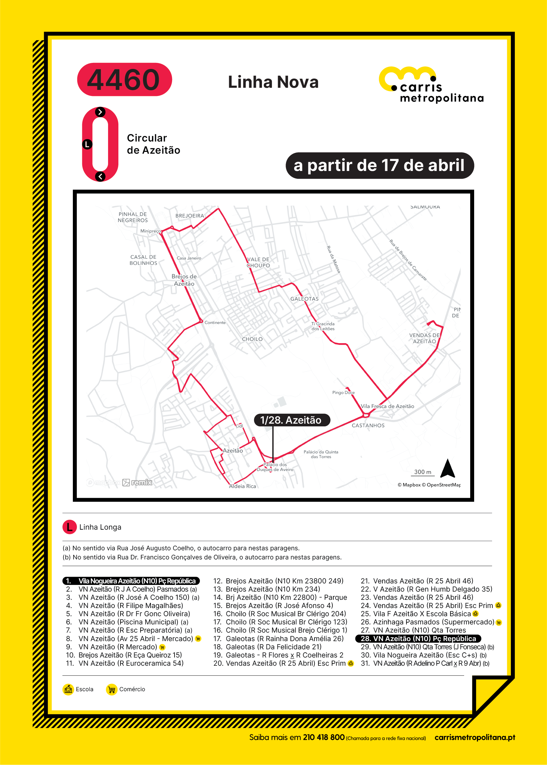 Para mais informações, deve ser contactado o serviço de call center da Carris Metropolitana, através do número 210 418 800.
