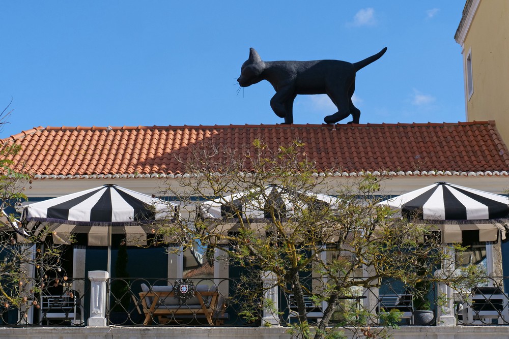 O telhado da Casa do Turismo, na Praça de Bocage, ostenta uma curiosa peça escultória de arte urbana, da autoria de Ricardo Romero, intitulada “O Gato e o Vento”.