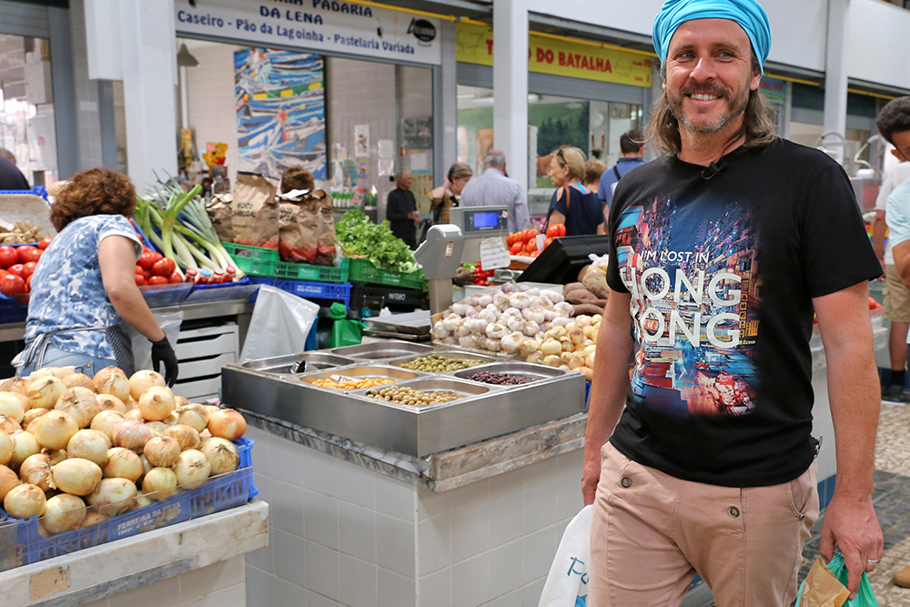 Na incursão de dia 9 pelo Mercado do Livramento, Chakall escolheu uma variedade de iguarias, entre as quais, ostras, conservas, fruta, pão do Faralhão e Moscatel de Setúbal.