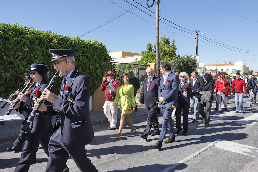 Numa cerimónia em que a banda da Sociedade Filarmónica Perpétua Azeitonense tocou “E Depois do Adeus” e “Grândola, Vila Morena”, as senhas utilizadas para pôr em marcha as movimentações militares da Revolução dos Cravos, André Martis destacou o Poder Local como “uma das conquistas mais importantes” do 25 de Abril.