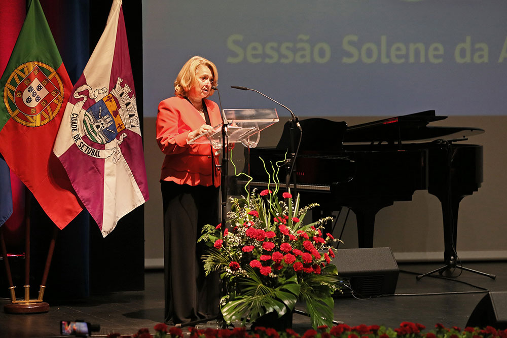 Maria das Dores Meira agradeceu a André Martins, que interveio pela última vez numa sessão solene comemorativa do 25 de Abril enquanto presidente da Assembleia Municipal de Setúbal, por a ter acompanhado neste caminho comum do desenvolvimento do concelho.