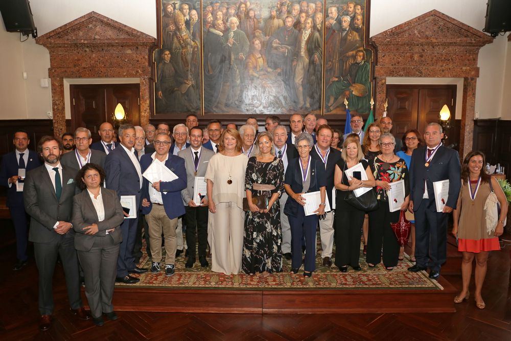 Após a homenagem aos trabalhadores aposentados, a Câmara Municipal de Setúbal entregou medalhas honoríficas a um conjunto de vinte cinco personalidades e entidades que se destacam ou destacaram de forma particularmente notória e nas mais diversas áreas, em algum momento da história local, ou continuadamente.