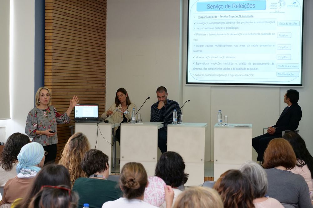 O colóquio “Peixe e Saúde – Uma questão de equilíbrio” contou com os contributos de especialistas das áreas da nutrição, da pesca e da gastronomia, como Vera Azevedo, nutricionista da Divisão de Educação do município de Setúbal, que abordou “O papel da autarquia na Educação Alimentar”.
