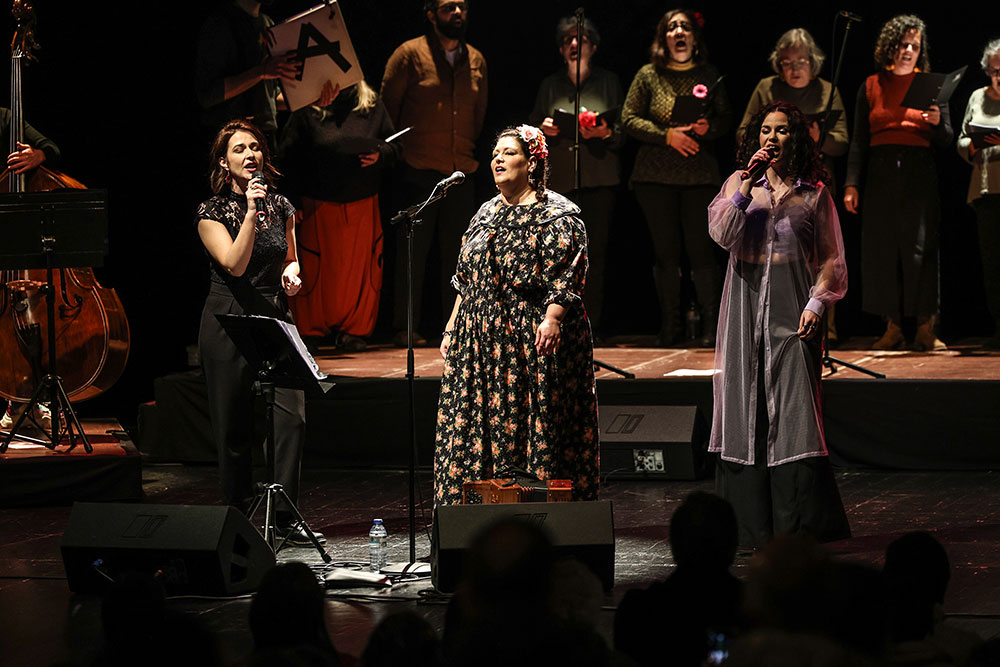 No final, os espetadores foram ainda surpreendidos com a subida ao palco da setubalense Joana Negrão, A Cantadeira, para cantar uma música com Celina da Piedade, cantora, acordeonista e compositora residente em Beringel, no Alentejo, mas criada em Setúbal, que dedicou o espetáculo não apenas às mulheres, mas a todos os que lutam pelos direitos das mulheres.