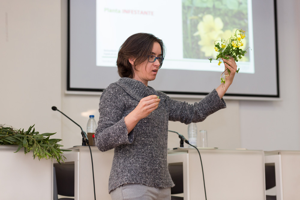 A investigadora esclareceu que a definição de plantas invasoras significa que se tratam de espécies exóticas, portanto de origem não nativa ao local onde se encontram, e que têm uma capacidade muito mais eficiente em se reproduzir.