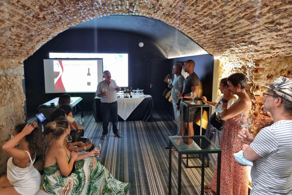 O enólogo da adega localizada em Vila Nogueira de Azeitão, concelho de Setúbal, apresentou os vinhos, transmitindo dicas sobre a melhor forma de os degustar e as harmonizações possíveis com diferentes produtos gastronómicos.