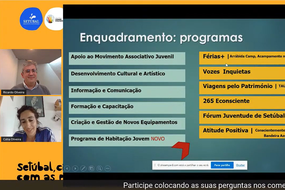 A segunda sessão do ciclo de seminários “Setúbal, Cidade Educadora: transformar o território com as pessoas” teve transmissão online, via streaming, no canal de Youtube do município e pode ser visto nesta ligação.