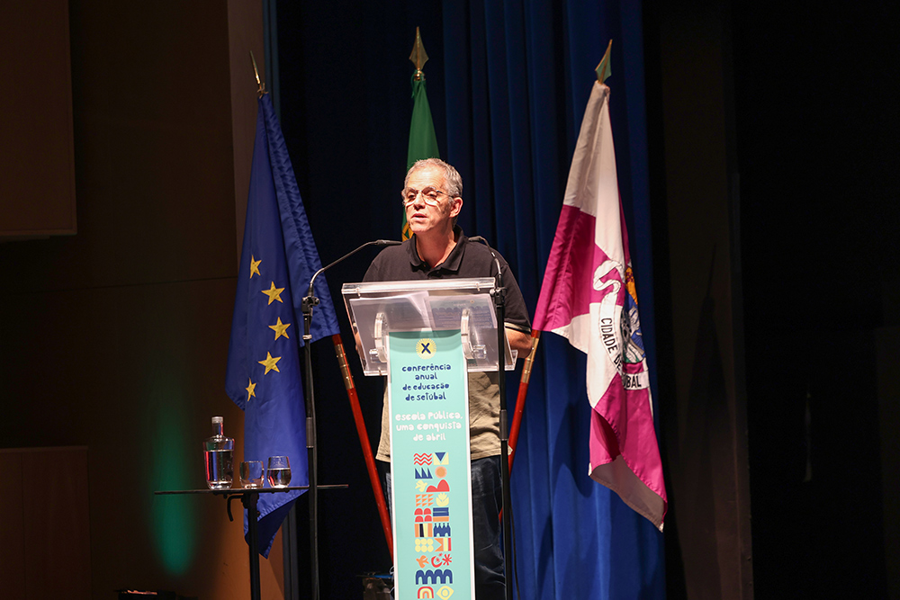 Antes de um debate moderado por João Pires, diretor da Escola Superior de Educação do IPS, Manuel Pires da Rocha, professor do Conservatório de Música de Coimbra e membro da banda de música tradicional portuguesa Brigada Victor Jara, fez a última intervenção da manhã, subordinada ao tema “Escola Pública, Uma conquista de Abril”.