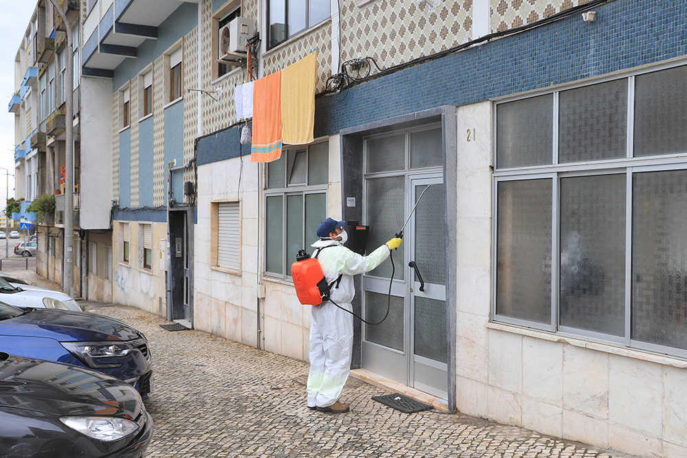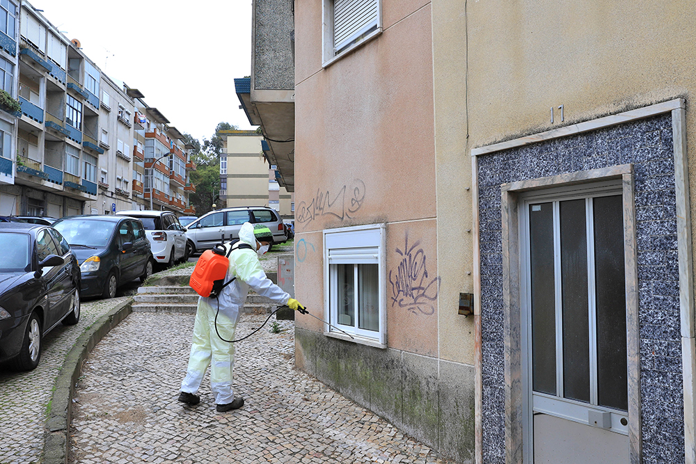 A campanha de desinfeção intensiva, com base numa planificação precisa de passagem programada por locais e todos bairros do concelho, decorre em permanência e insere-se na operação de larga escala desencadeada no âmbito do plano de contingência criado para lidar com a crise de saúde pública.