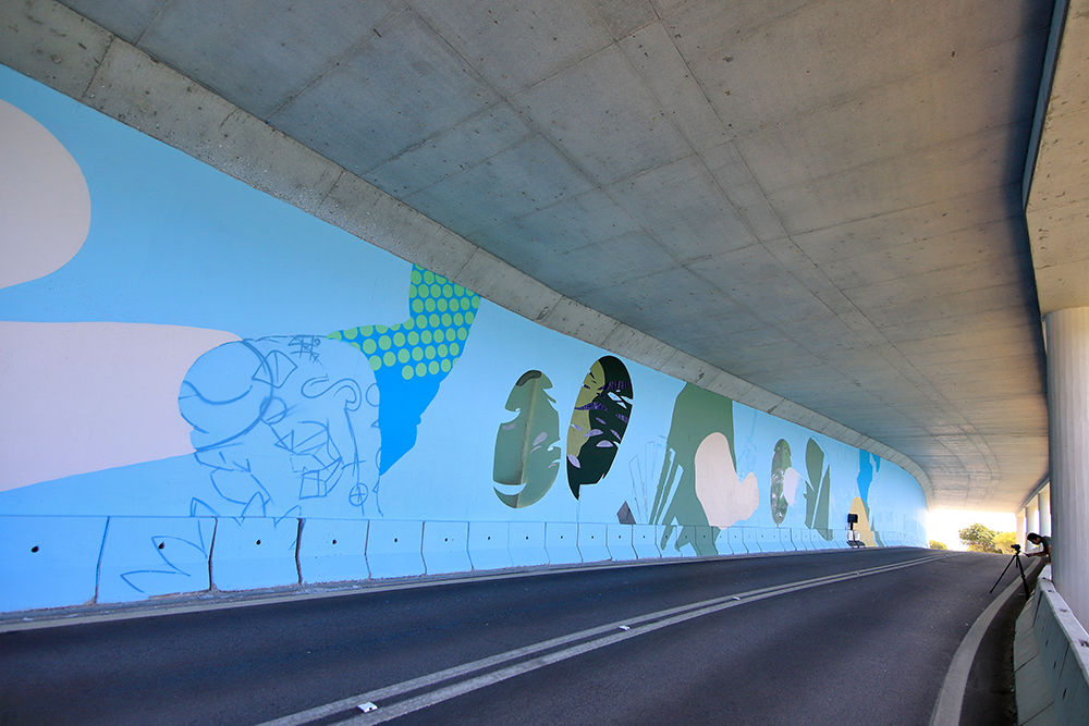 O mural, realizado numa extensão de 131 metros, cujos esboços já estão visíveis nas paredes do túnel, “será de fácil leitura e com imagens de grande dimensão”, revela Smile sobre o trabalho em curso, pautado pelo recurso ao fotorrealismo, estilo que o caracteriza como artista.