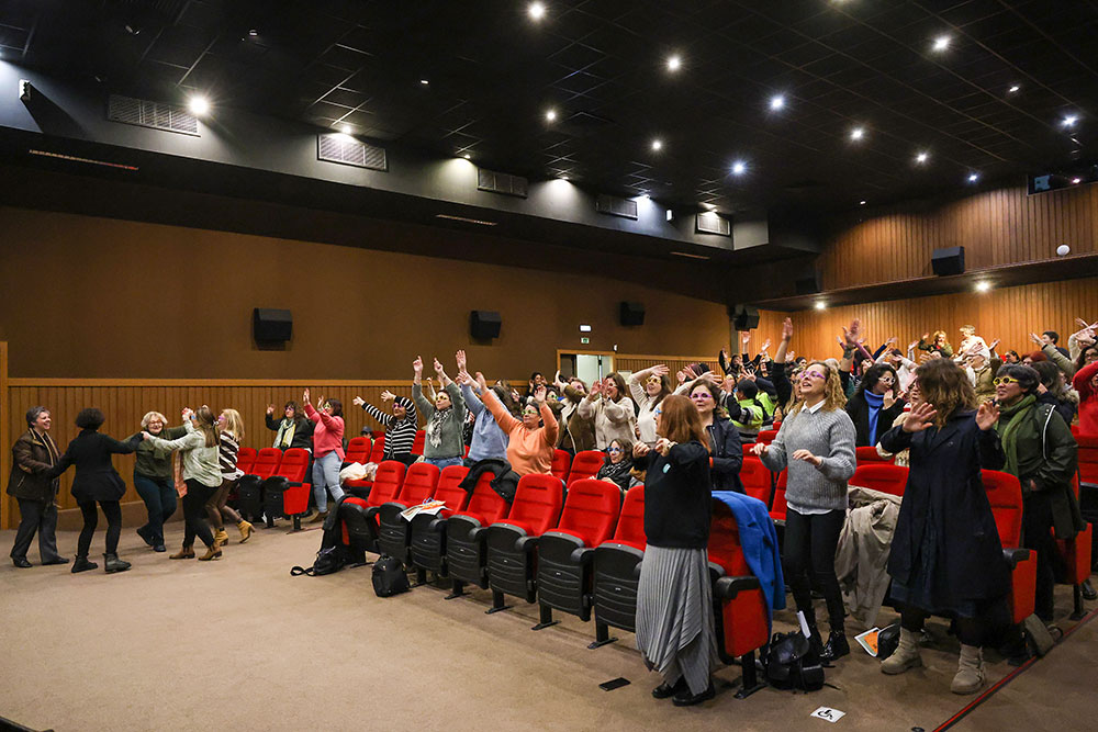 A vice-presidente da Câmara Municipal de Setúbal, acompanhada da vereadora Rita Carvalho, dirigiu-se também à audiência para valorizar o evento e agradecer às trabalhadoras e aos trabalhadores pela dinâmica demonstrada ao longo da iniciativa.