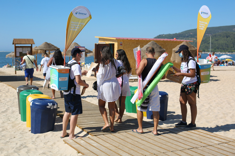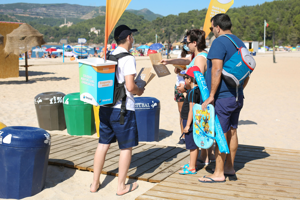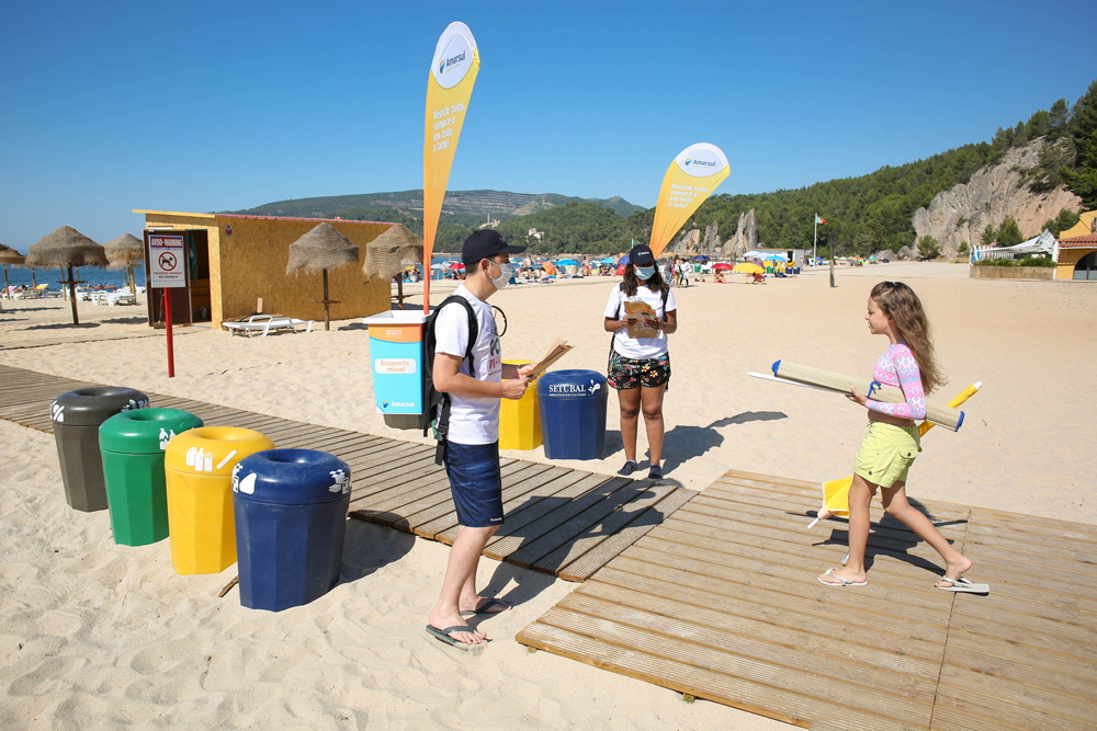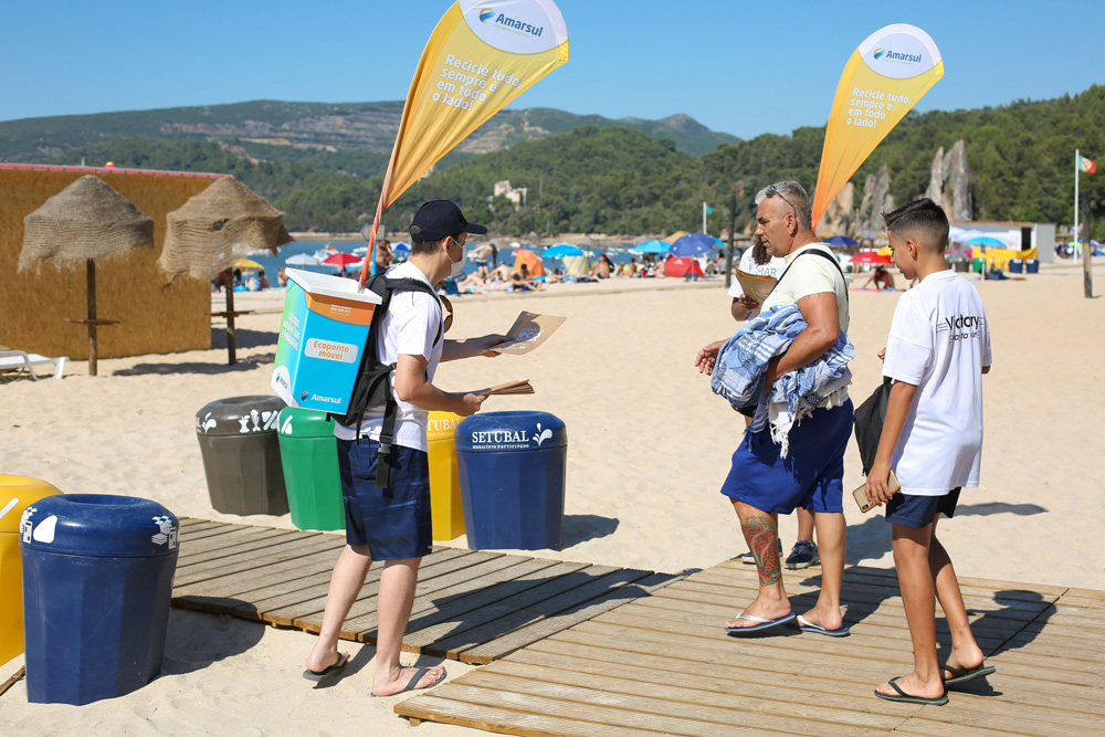 À entrada desta zona balnear setubalense, uma equipa do “Eco Praias – Vamos Reciclar à Beira-Mar!”, iniciativa dinamizada pela Amarsul com a colaboração da Câmara Municipal de Setúbal, sensibilizou os banhistas para a adoção de comportamentos ambientalmente sustentáveis.