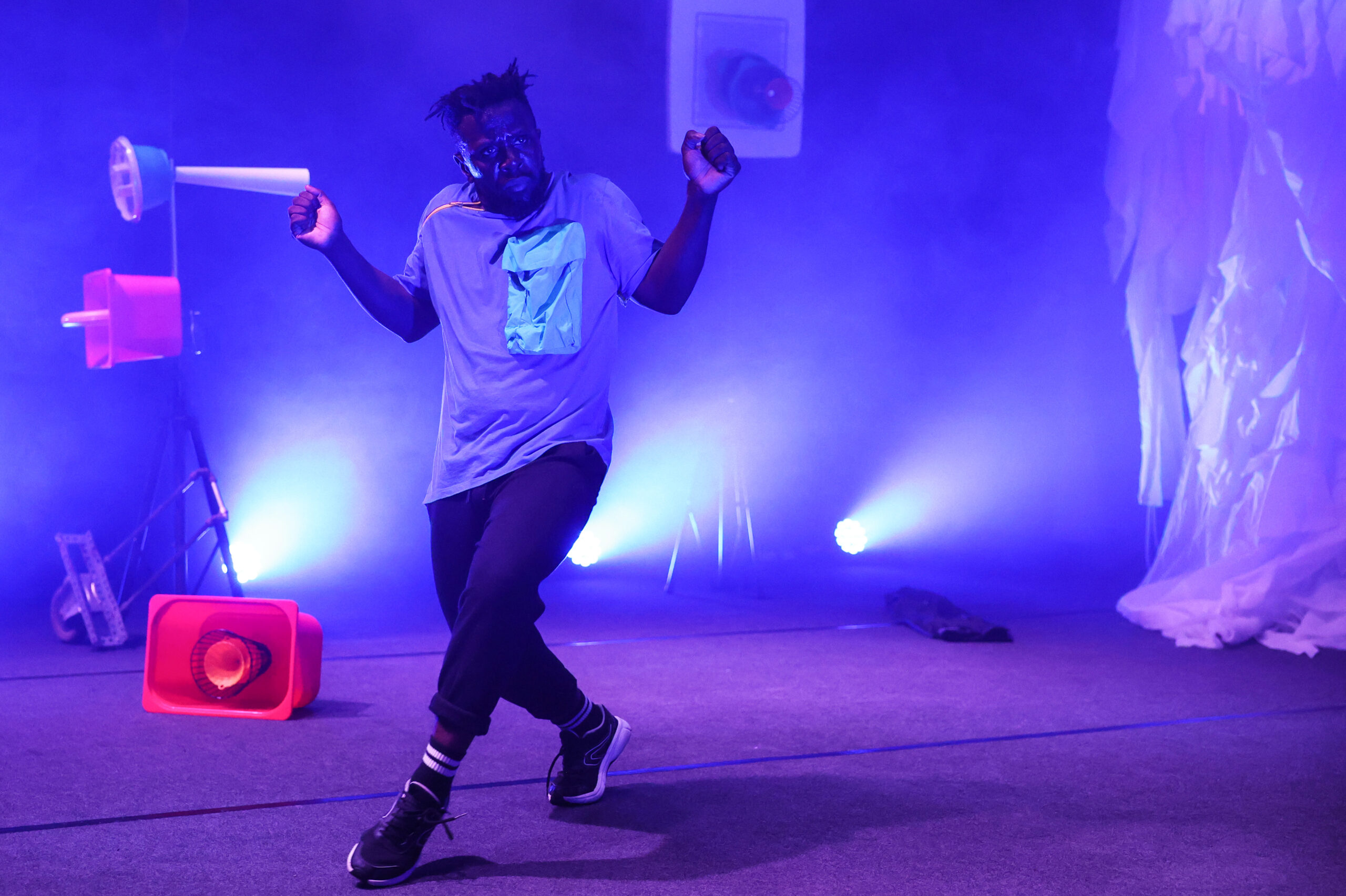 Já à noite, Telmo Branco protagonizou “O Indizível – Parte 3”, performance ativista que cruza as disciplinas de teatro, dança e sonoplastia, para confrontar a violência sexual estrutural e a cultura do silêncio.