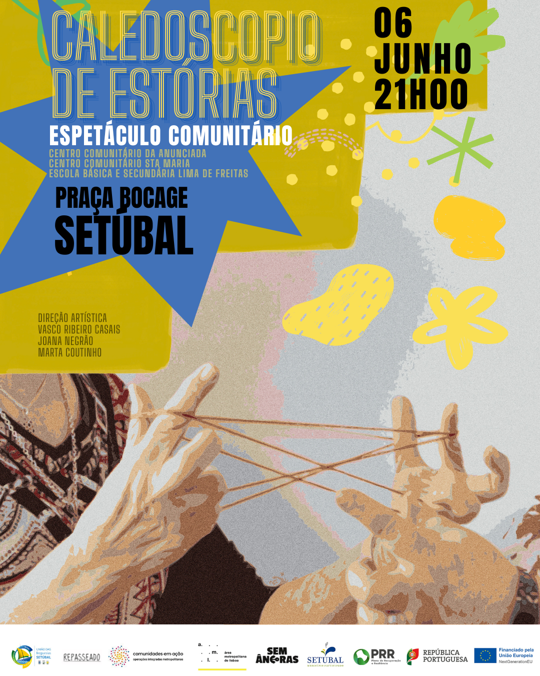 Intitulado “Caleidoscópio de Estórias”, o evento, uma criação de Vasco Ribeiro Casais, Joana Negrão, Marta Coutinho e João Bordeira, com a participação de utentes do Centro Comunitário da Anunciada e Santa Maria, da União das Freguesias de Setúbal, e alunos da Escola Básica e Secundária Lima de Freitas, tem estreia marcada para as 21h00, na Praça de Bocage, com os apoios da Câmara Municipal e da União das Freguesias de Setúbal.