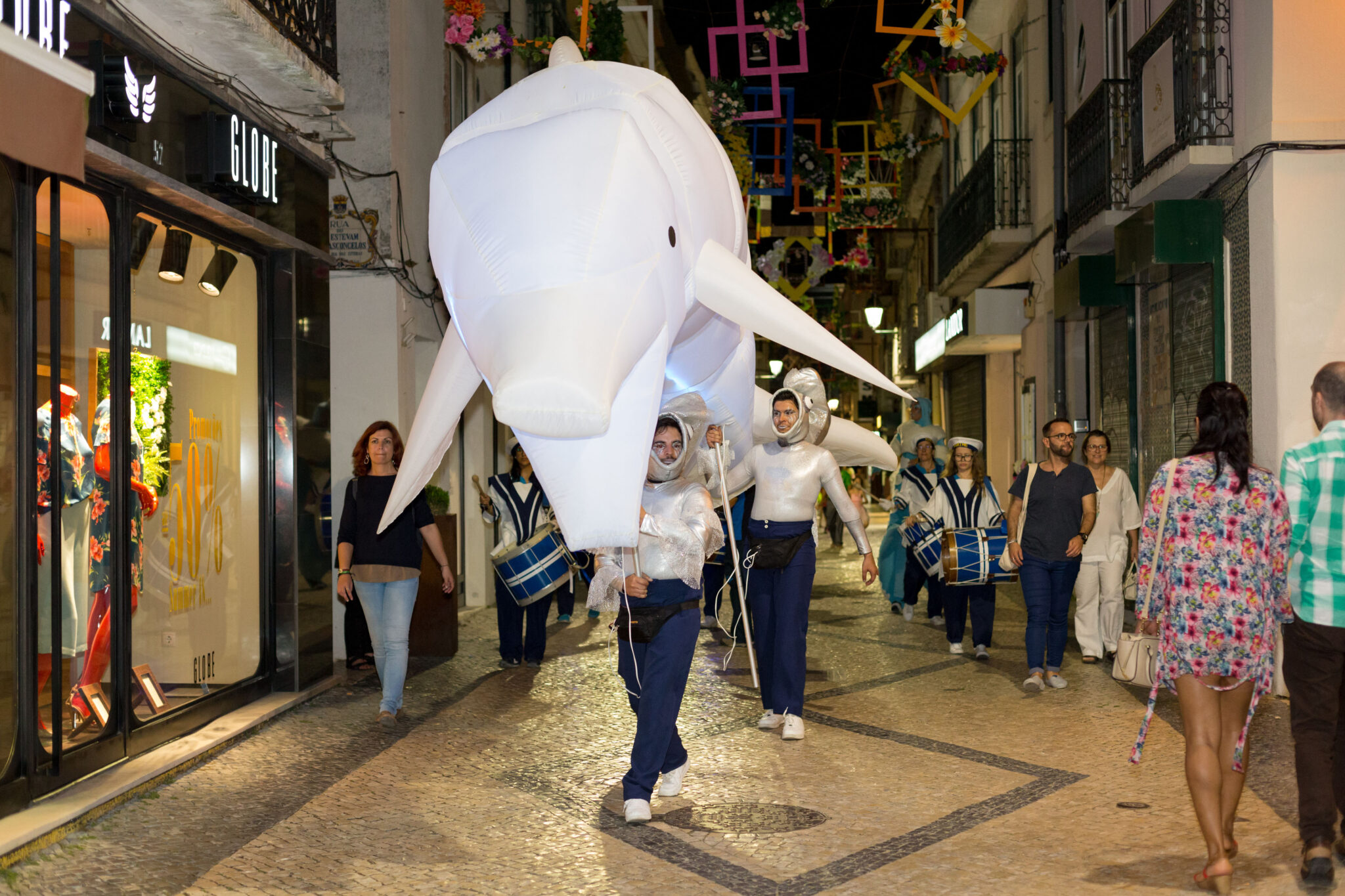 Integrado neste programa, o Setúbal Summer Fridays levou animação logo no dia 22, com um golfinho insuflável gigante a mergulhar pelas ruas da Baixa ao som de uma banda itinerante de guardiões do mar e músicos marinheiros.