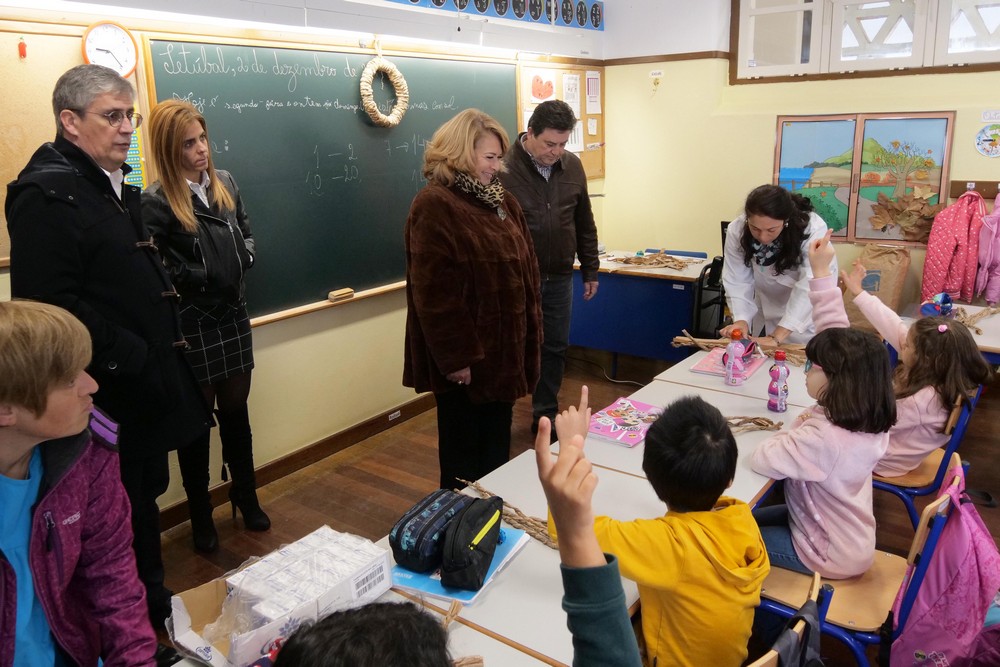 Na EB n.º 9 do Casal das Figueiras, que recebeu obras de requalificação no valor de cerca de 62 mil euros, Maria das Dores Meira distribuiu sorrisos, votos de boas festas e trocou algumas palavras com professores e alunos.