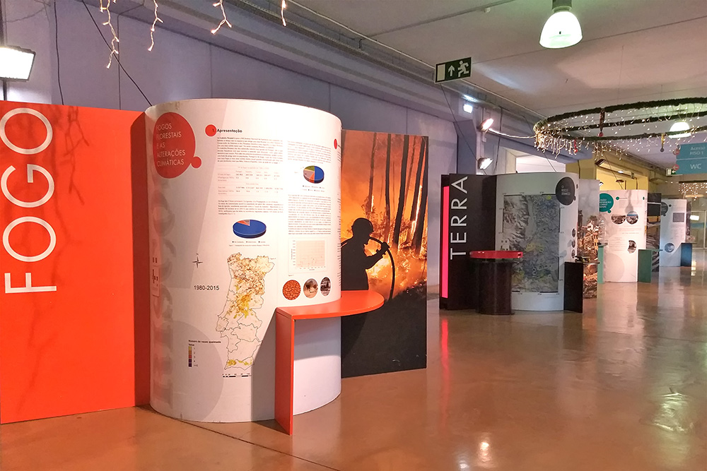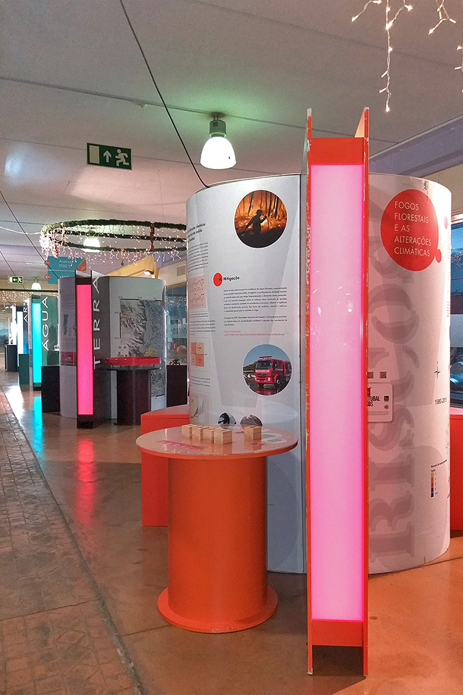 Em quatro módulos, são apresentados os principais riscos presentes nos quatro elementos da natureza – terra, ar, água e fogo – em painéis com informações escritas e imagens, mas também em diversos simuladores interativos.