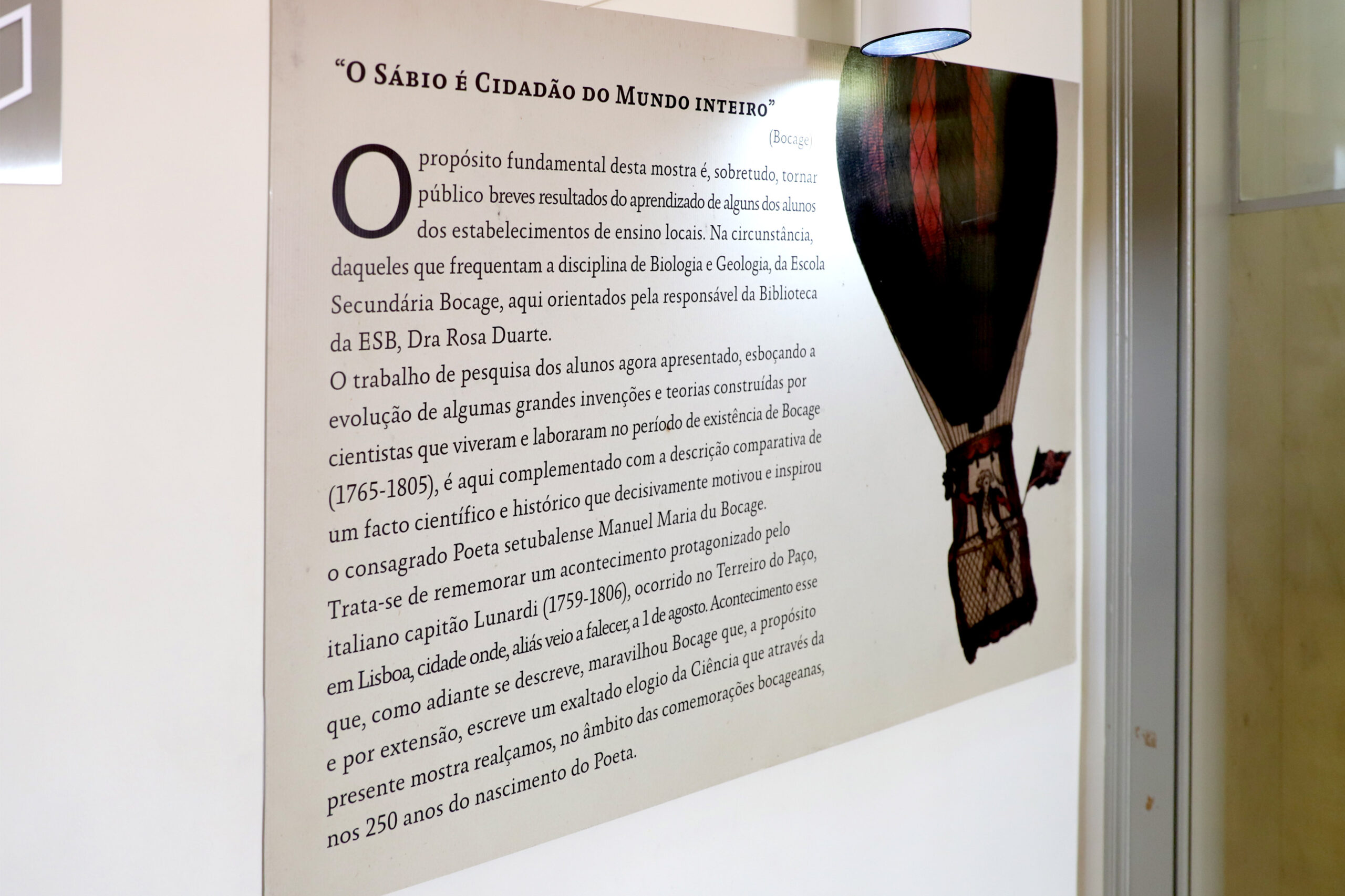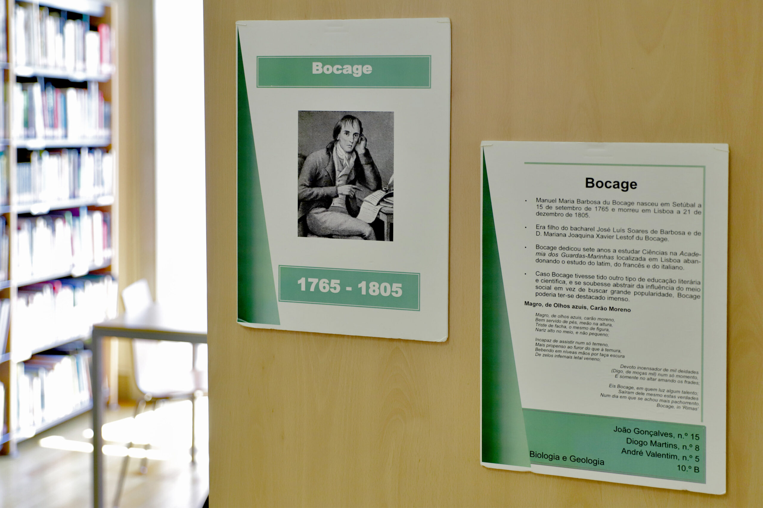 A exposição, que esteve patente na biblioteca em 2016, no âmbito das Comemorações dos 250 Anos do Nascimento de Bocage, é composta por uma dezena de ilustrações elaboradas por alunos da Escola Secundária du Bocage sobre o poeta e nove cientistas contemporâneos.