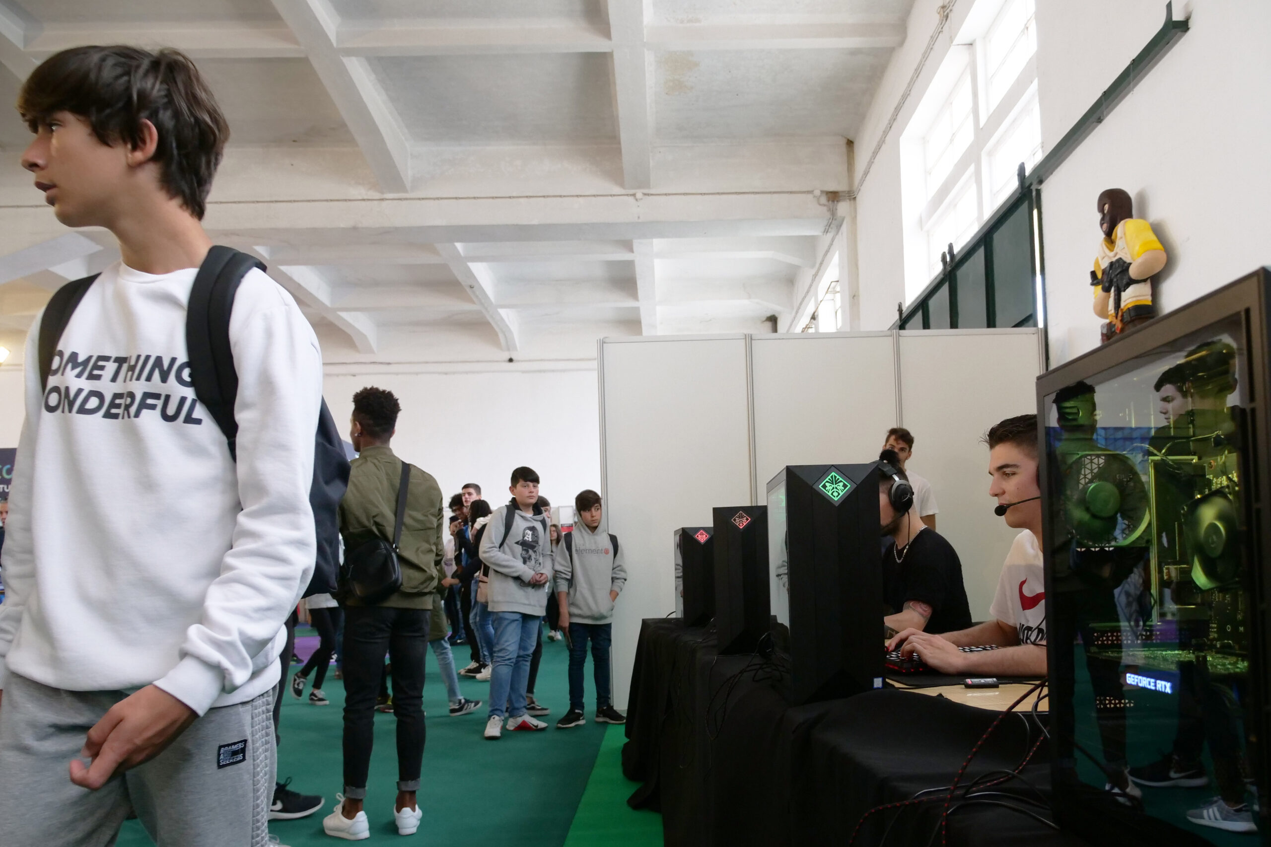 Uma das zonas mais animadas é o Espaço Gaming, onde dezenas de crianças e jovens experimentam, gratuitamente, vários jogos e participam em torneios de FIFA 19 e de Counter Strike.