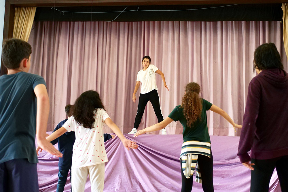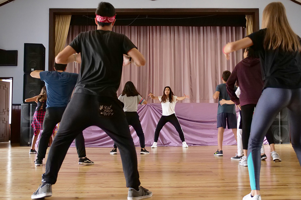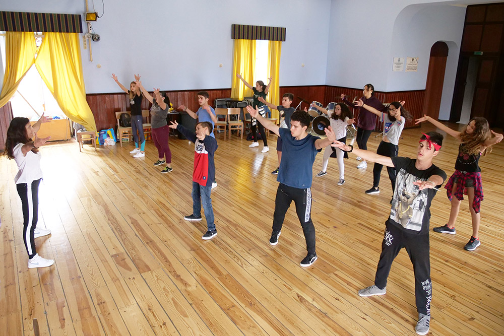 Os jovens parecem saber bem os passos e estão em sintonia, o que deixa a monitora satisfeita. “Perfeito! Vamos passar para outra parte.”