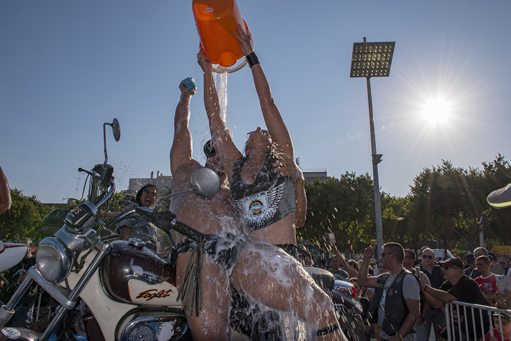 Os habituais espetáculos de bike wash centraram, igualmente, atenções no recinto da festa que contou ainda com tasquinhas gastronómicas com petiscos e bebidas e animação musical a cargo das das bandas Big Up, de homenagem à música reggae, e Iron Beast, de tributo a Iron Maiden.